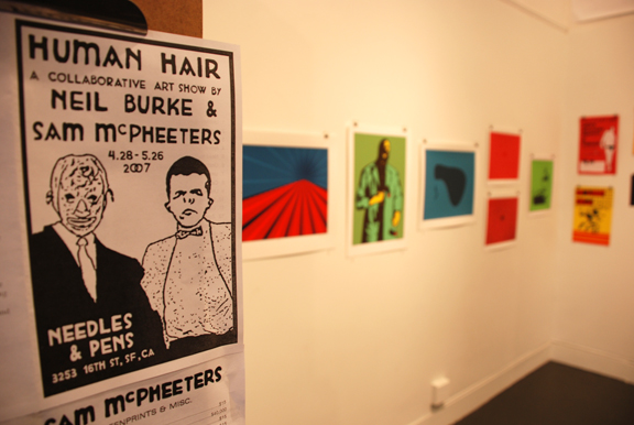 Needles + Pens Presents: Human Hair A Collaborative Art Show by Neil Burke & Sam McPheeters on display April 28th, 2007 through May 26th 2007 |