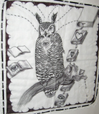 6. Oh! I Get it! (ink and embroidery on handkerchief) $525 |