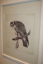 9. Who's Next? (ink and embroidery on handkerchief) SOLD |