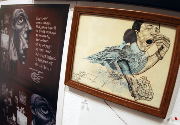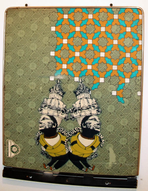 ![]() (RIght) Moroccan Tranny by Other (mixed media) ![]() Moroccan Tranny by Other close-up ![]() Opening night attendees |