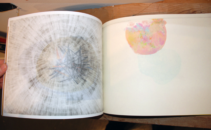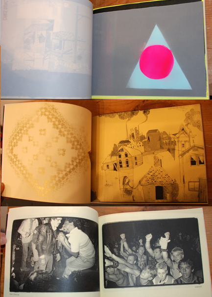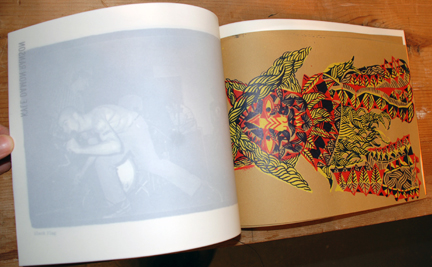 | • Measures 8.5"x11", packaged in a vellum bag • Over 50 pages of multi-colored, Silk-Screened, Stenciled, Photocopied, and hand drawn imagery. • Limited edition of 200 copies, • Hand-Numbered, Sewn, and Assembled by the artists |